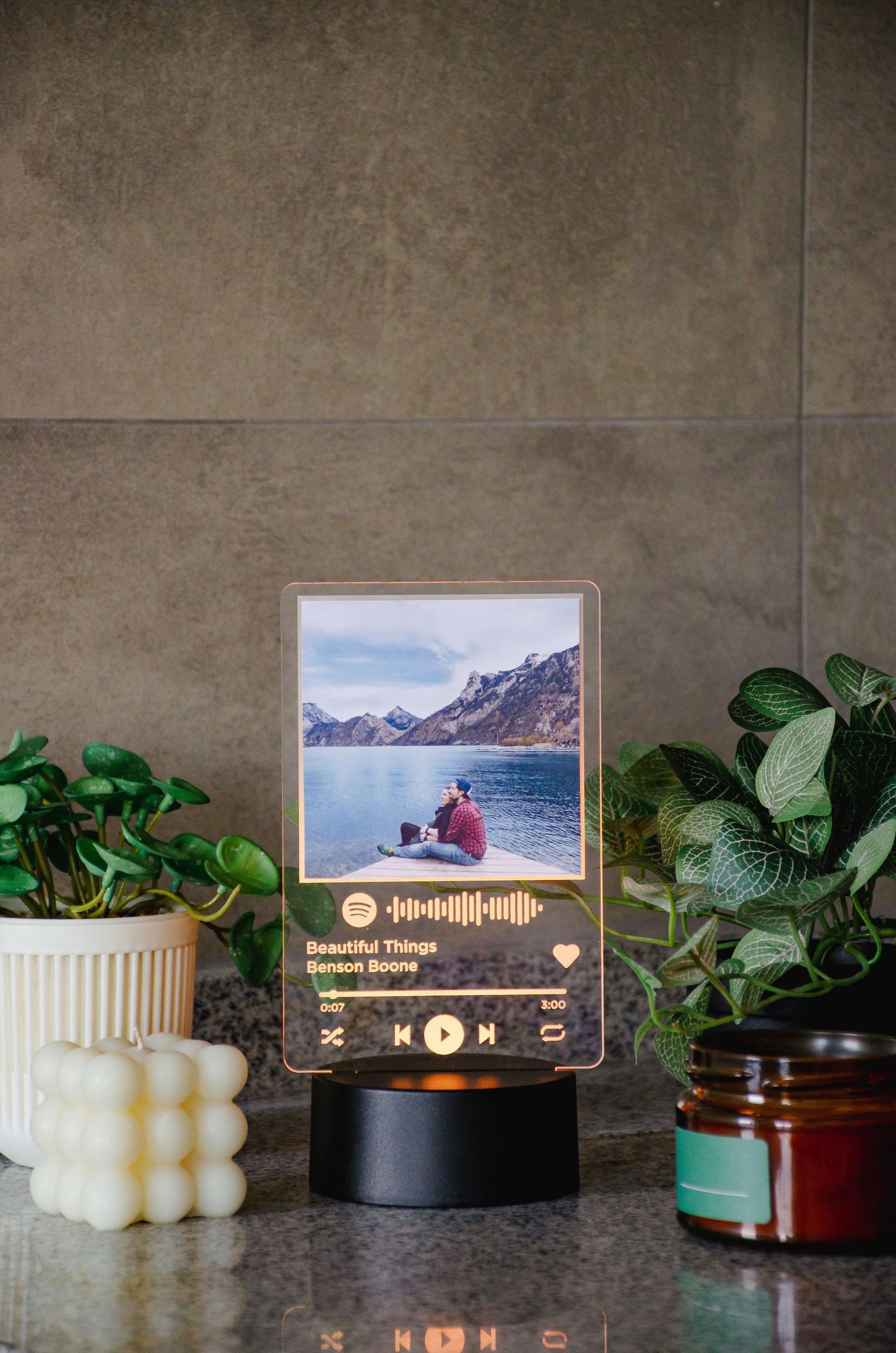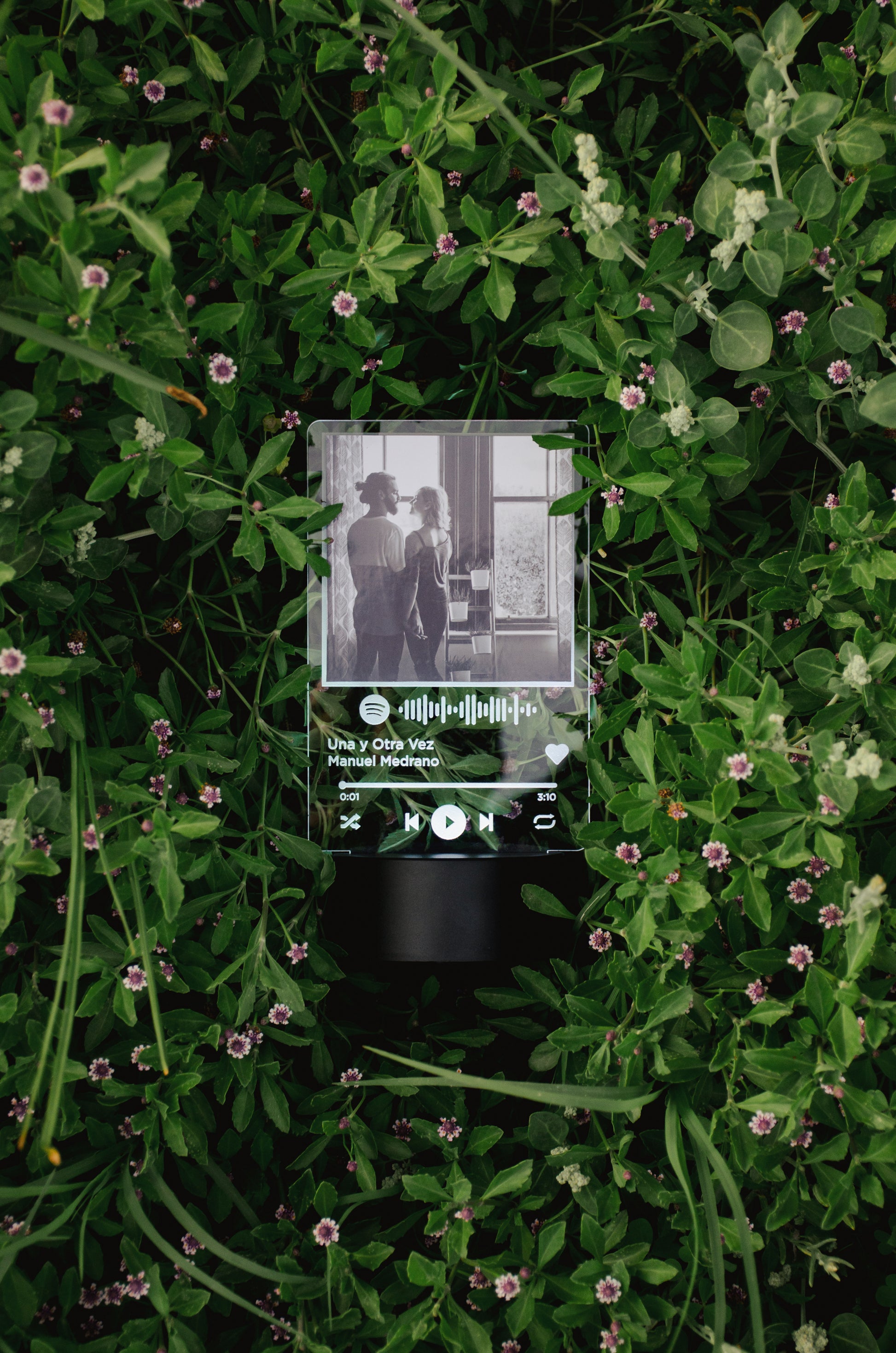 Transforma tu fotografía favorita en un elegante artículo decorativo con el título e intérprete de una canción especial en Spotify. Al escanear el código desde la App en tu dispositivo móvil, la canción se reproducirá automáticamente.