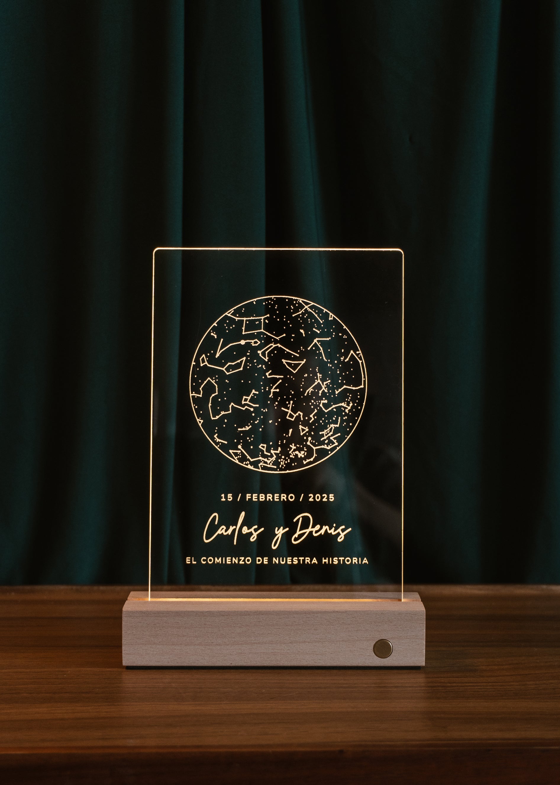 Regala este hermoso recuerdo conmemorativo a quién ames y mira como se iluminan sus ojos con la belleza de las estrellas.