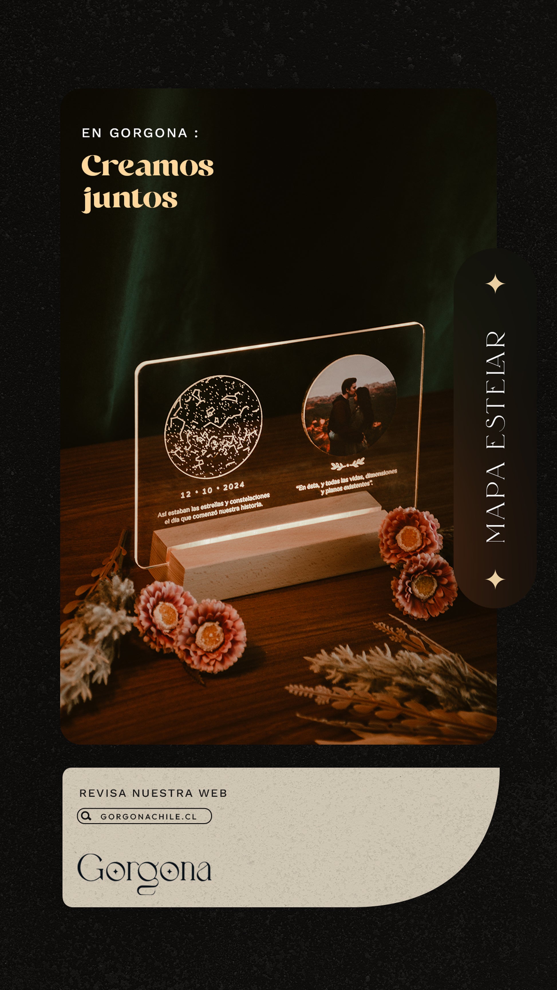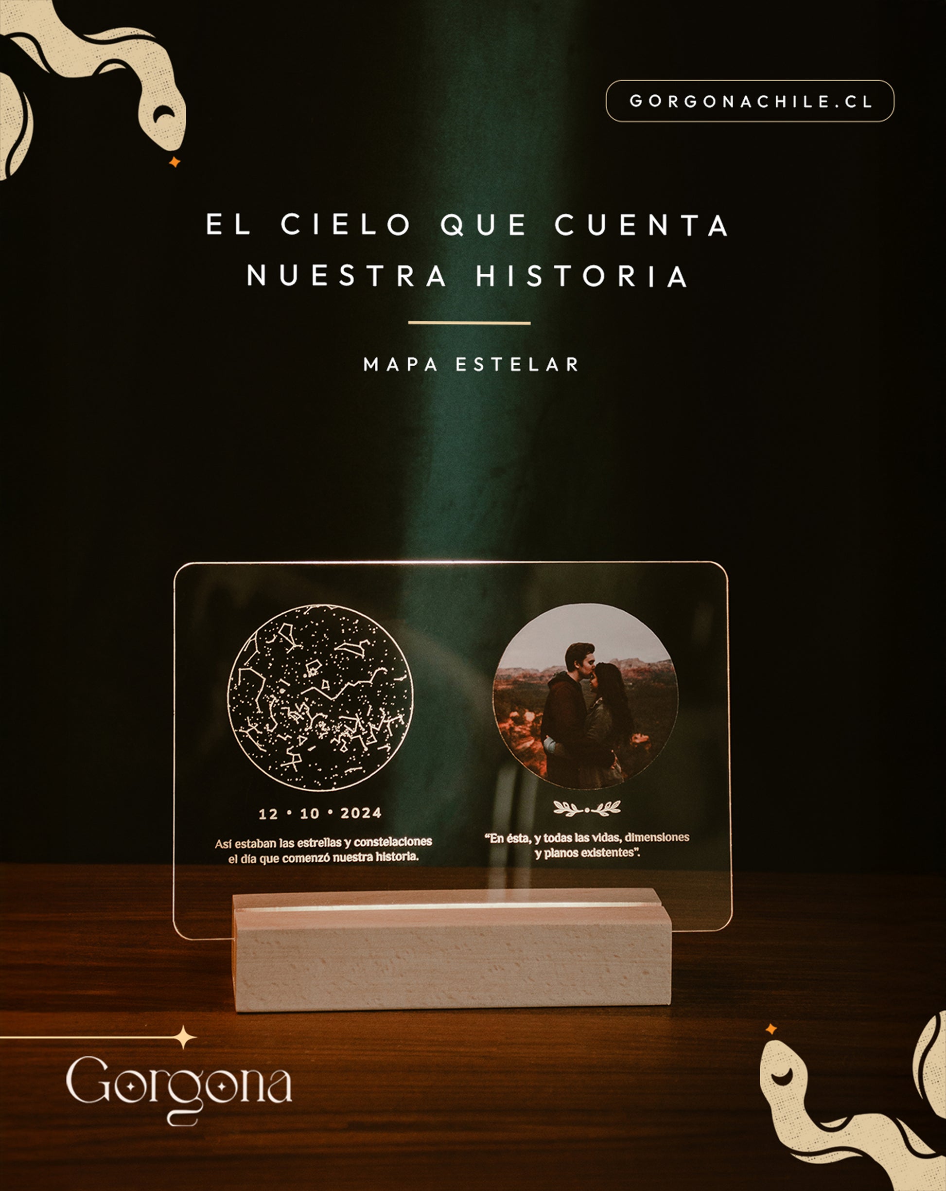 Transformamos esa fecha especial en una lámpara única: con el mapa estelar del cielo de ese día, una fotografía y los mensajes que nacen del corazón.